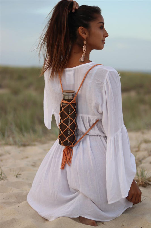 Trinkflasche-Rucksack NAVARNA I Aperol I exzellentes & nachhaltiges Makramee