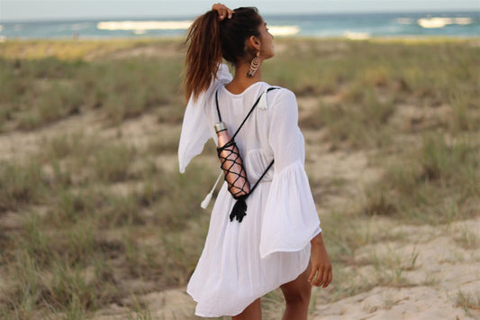 Trinkflasche-Rucksack NAVARNA I Elfenbein I exzellentes & nachhaltiges Makramee