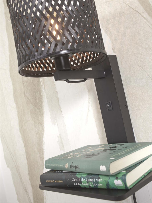 GOOD&MOJO I Wandleuchte I JAVA I Farbe: Natur/Schwarz I Schirm: Ø15 x 17