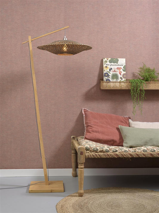 GOOD&MOJO I Stehleuchte I BHUTAN I Farbe: Natur/Schwarz I Schirm: Ø25 x 20