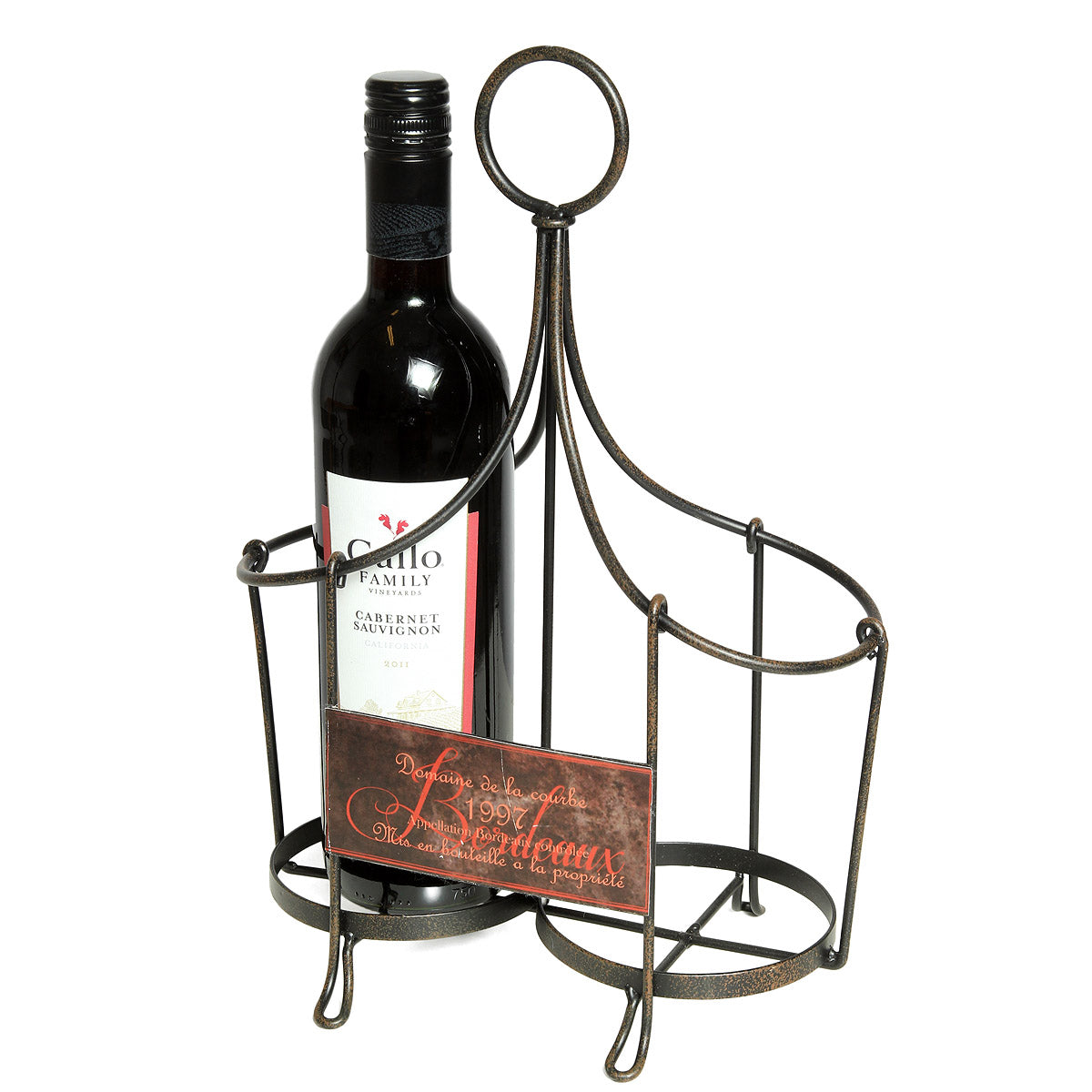 Eleganter Flaschenständer für 2 Flaschen, hergestellt aus beschichtetem Eisen in antiker Optik.