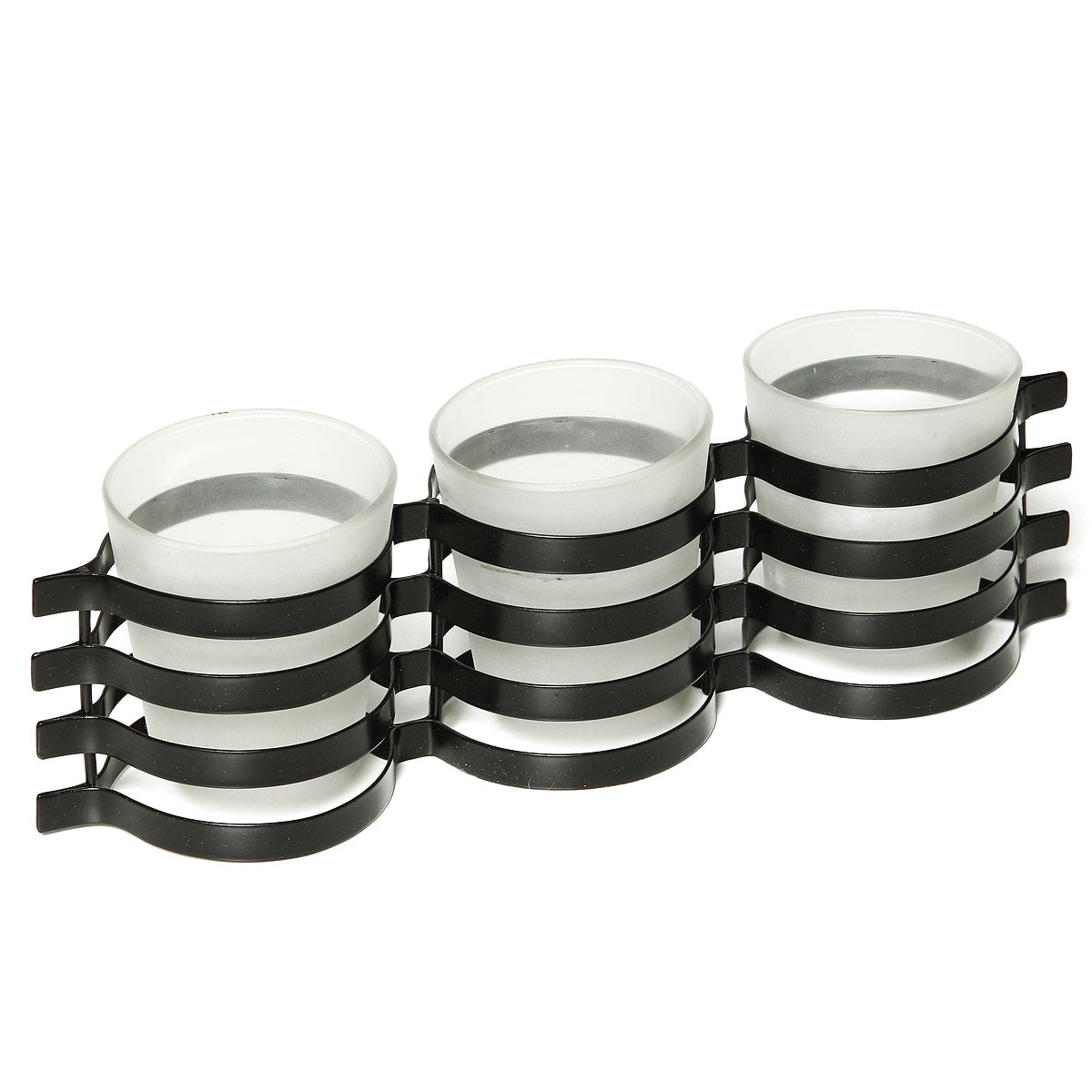 Kerzenständer in Kelchform, gefertigt aus schwarzem Eisendraht.
