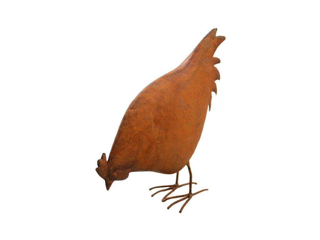 Die Henne aus verrostetem Metall ist ein toller Blickfang im Garten. Passend zu der Henne haben wir auch den Hahn in unserem Shop. Farbe: echtrost Maße: H30/B27/T11 cm Material: Metall verrostet ACHTUNG, kann abfärben! Versandbereit innerhalb von 24 Stunden.