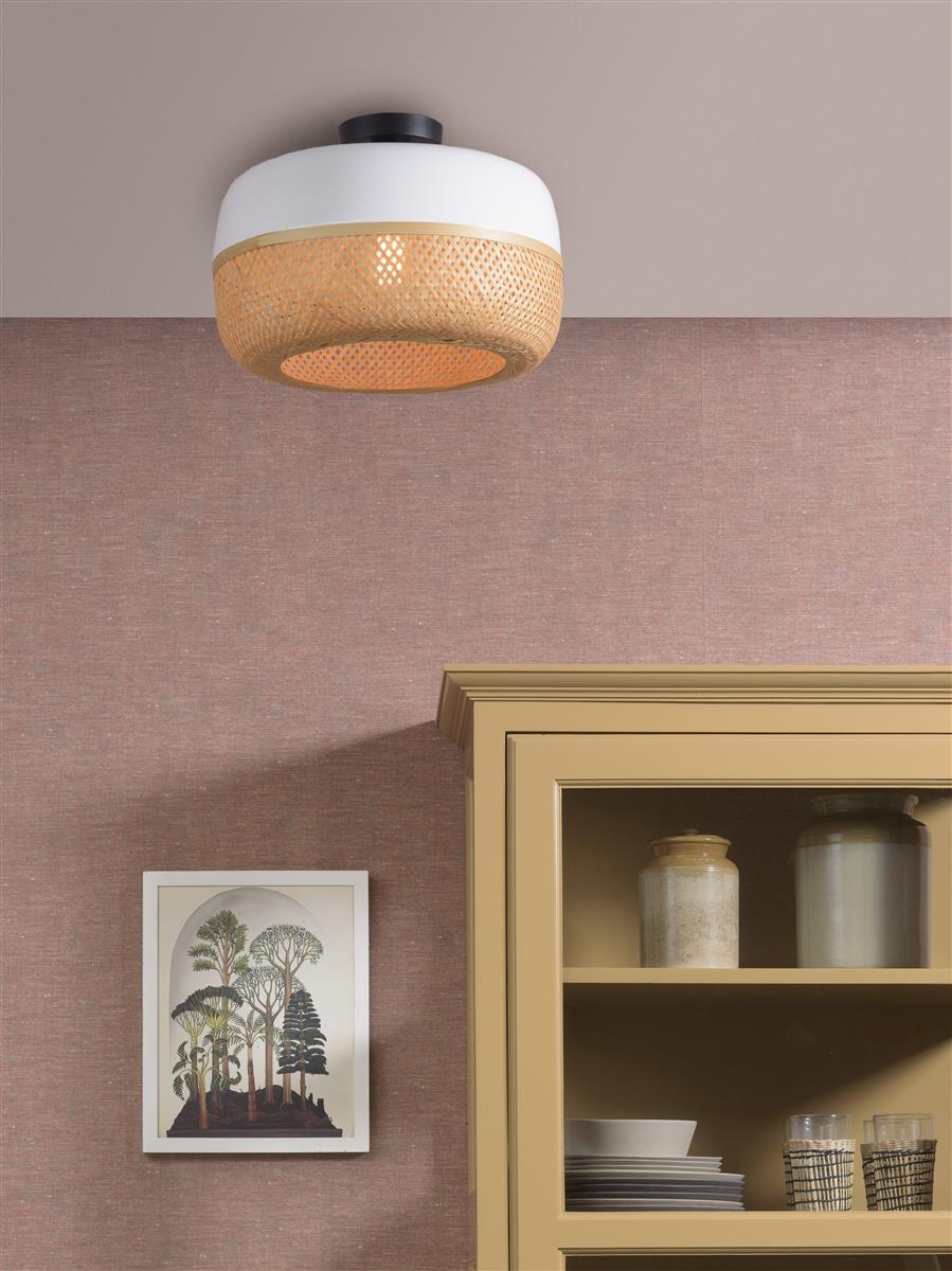 Good&Mojo I Deckenleuchte I MEKONG I Farbe: Natur/Weiß I Schirm: Ø44 x 22