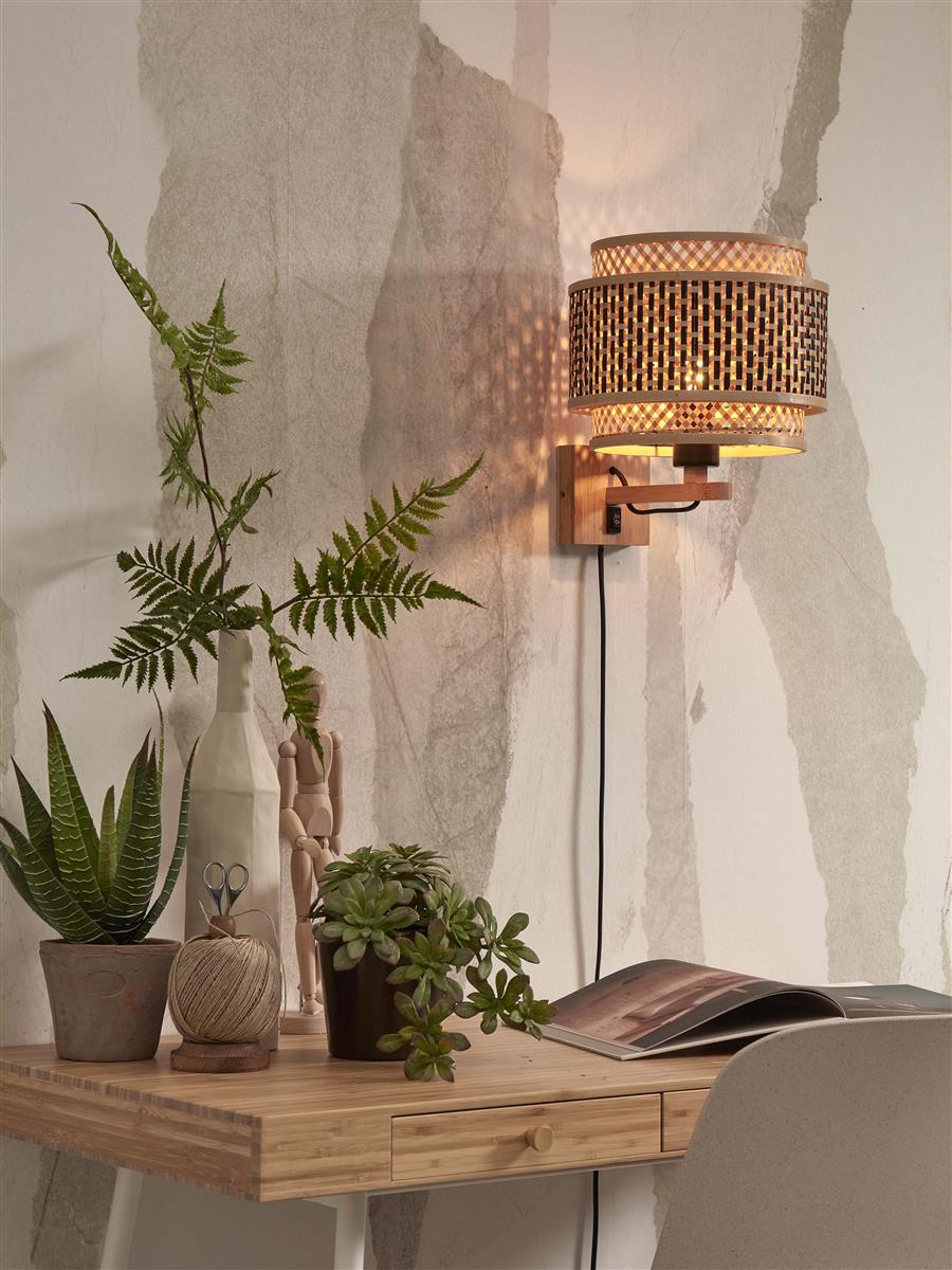 GOOD&MOJO I Wandleuchte I BHUTAN I Farbe: Natur/Schwarz I Schirm: Ø25 x20