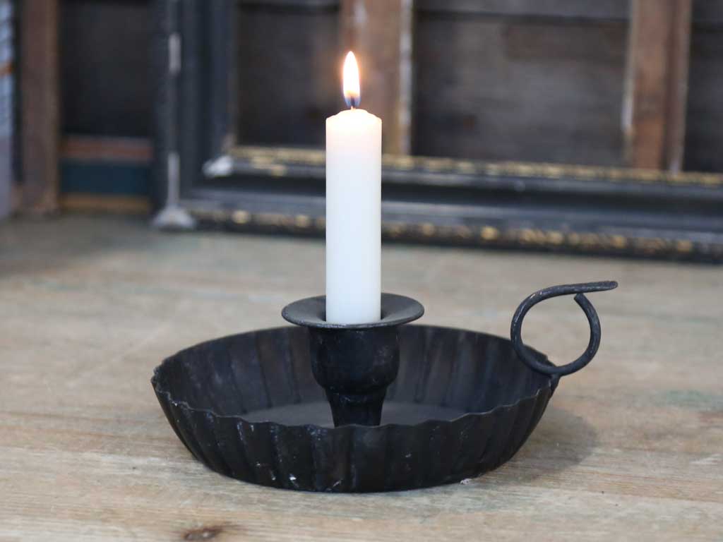 Rustikaler Kammerleuchter mit Schale von Chic Antique, passend für jeden Wohnbereich. Die Schale kann je nach Jahreszeit dekoriert werden, muss aber nicht. Farbe: antik kohle Maße: H6/D16 cm Material: Eisen Passende Stabkerzen D2cm Versandbereit innerhalb von 24 Stunden.