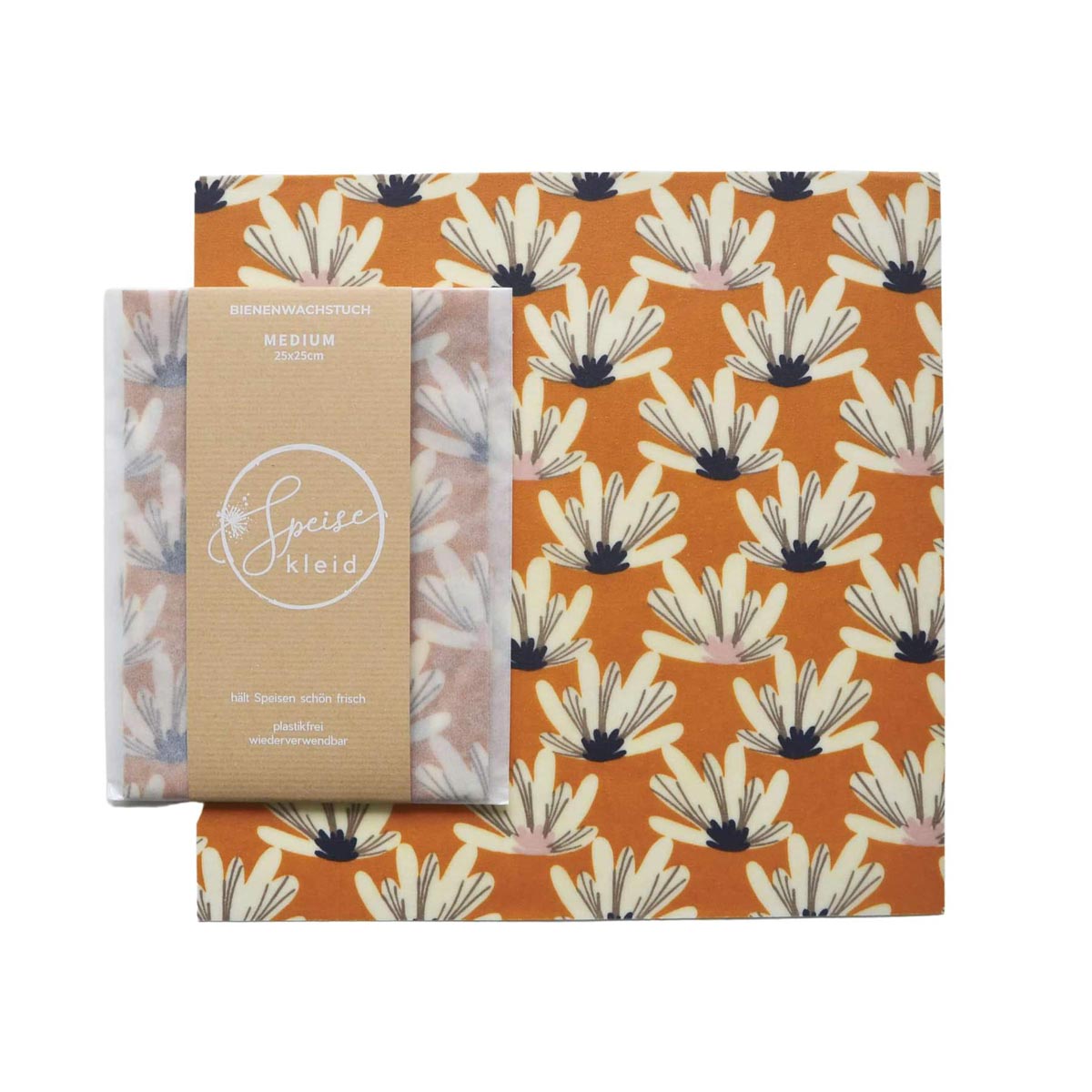 Tolle wiederverwendbare Bienenwachstücher von Speisekleid. Sie halten Lebensmittel wie Brot, Obst, Gemüse, Käse und vieles mehr frisch. Erhältlich in verschiedenen Mustern und Größen. Durch die Wärme der Hände wird das Bienenwachstuch geschmeidig und lässt sich so gut verwenden. Haltbarkeit ca. 1 Jahr. Muster: Blumen Maße: Medium = 25 x 25 cm Material: Oekotex100- oder Bio-Baumwolle, Baumharz, Bio-Jojobaöl, Bio-Bienenwachs Hinweis: Nicht für rohes Fleisch und Fisch, Reinigung unter kaltem Wasser abspülen.  Versandbereit innerhalb von 24 Stunden.