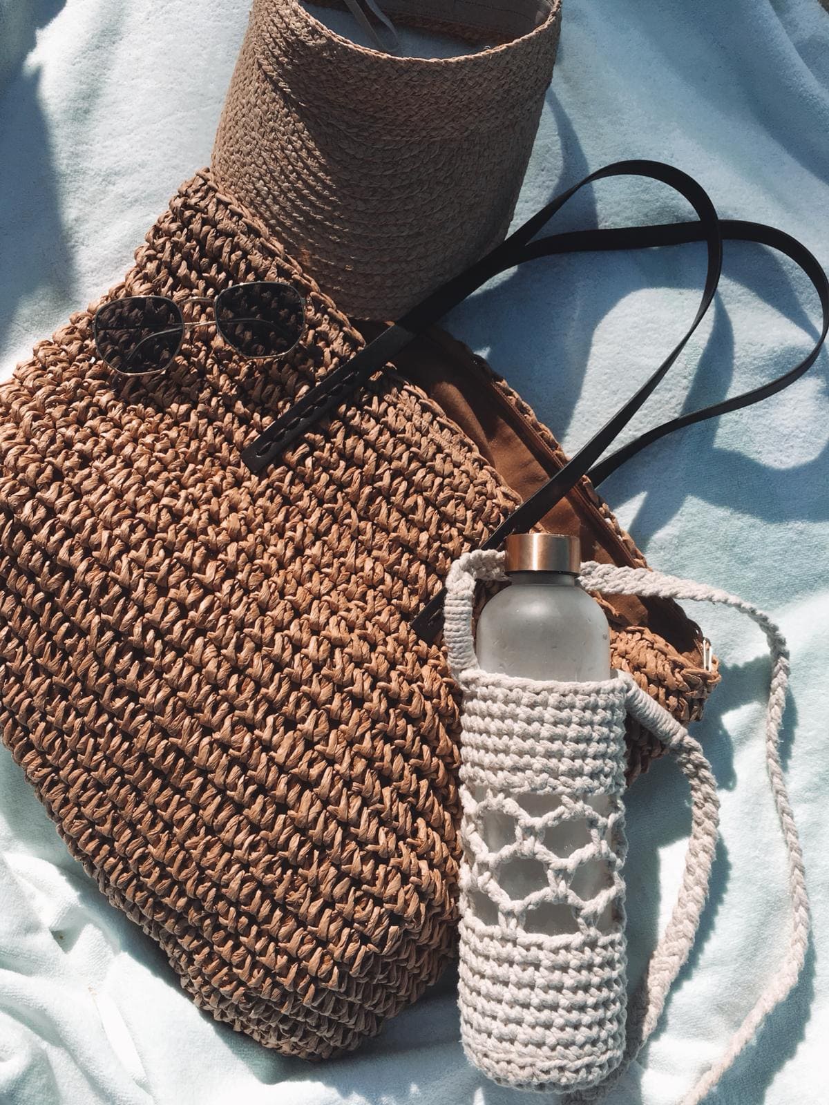 Die Makramee-Wasserflaschentasche von Jambu ist eine stilvolle und praktische Lösung, um die Hände frei für Ihre Wasserflasche zu haben. Perfekt für den Transport Ihrer Wasserflasche bei Spaziergängen, Wanderungen, Ausflügen zum Strand und mehr. Der Flaschenrucksack ist aus Bio-Baumwollgarn gefertigt und hat eine Länge von 85 cm.