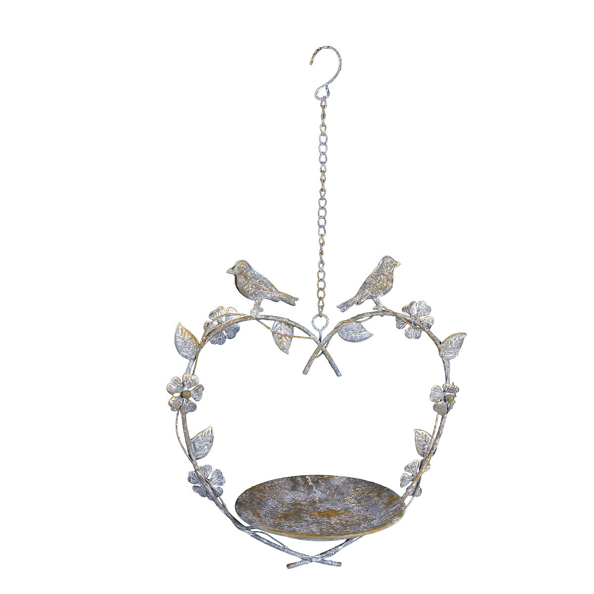 Unser liebevoll gefertigtes Vogelbad aus Metall in schöner Herzform wird mit Hilfe einer 20 cm langen Kette aufgehängt, schützt so vor ungebetenen Gästen und zaubert ein romantisches Ambiente in Ihrem Garten. In der 16 cm großen Wasserschale können die kleinen Vögel ein Bad nehmen, sich abkühlen oder etwas trinken.
