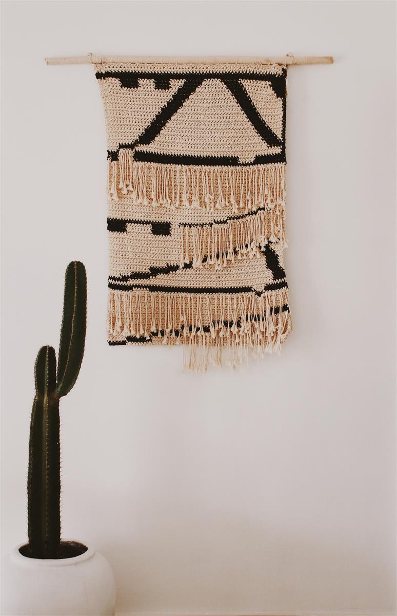 Die Sawarna Hanging Wall Art wird zu 100 % aus organischen Materialien handgefertigt und ist eine einzigartige Ergänzung für jede Wohnungseinrichtung. Der Sawarna Makramee-Wandbehang ist aus Bio-Baumwolle handgewebt und mit seinen einzigartigen Fransen die perfekte Ergänzung für jede Boho-Wohneinrichtung.