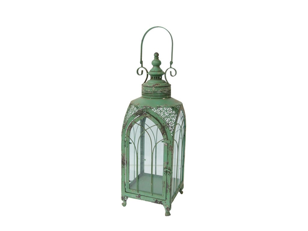 Traumhaft schicke Laterne im alt franz. Landhausstil. Sie besticht durch die feinen Details und passt einfach in jeden Bereich des Hauses in dem warmes Kerzenlicht erstrahlen soll. Farbe: antique grün Maße: H71/B20/T20 cm Material: Eisen, Glas Versandbereit innerhalb von 24 Stunden.