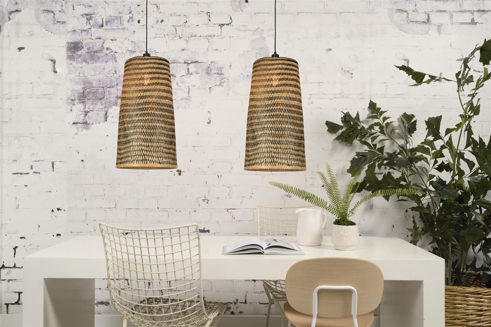 Good&Mojo I Hängeleuchte I KALIMANTAN I Farbe: Natur/Schwarz I Schirm: Ø37 x 66