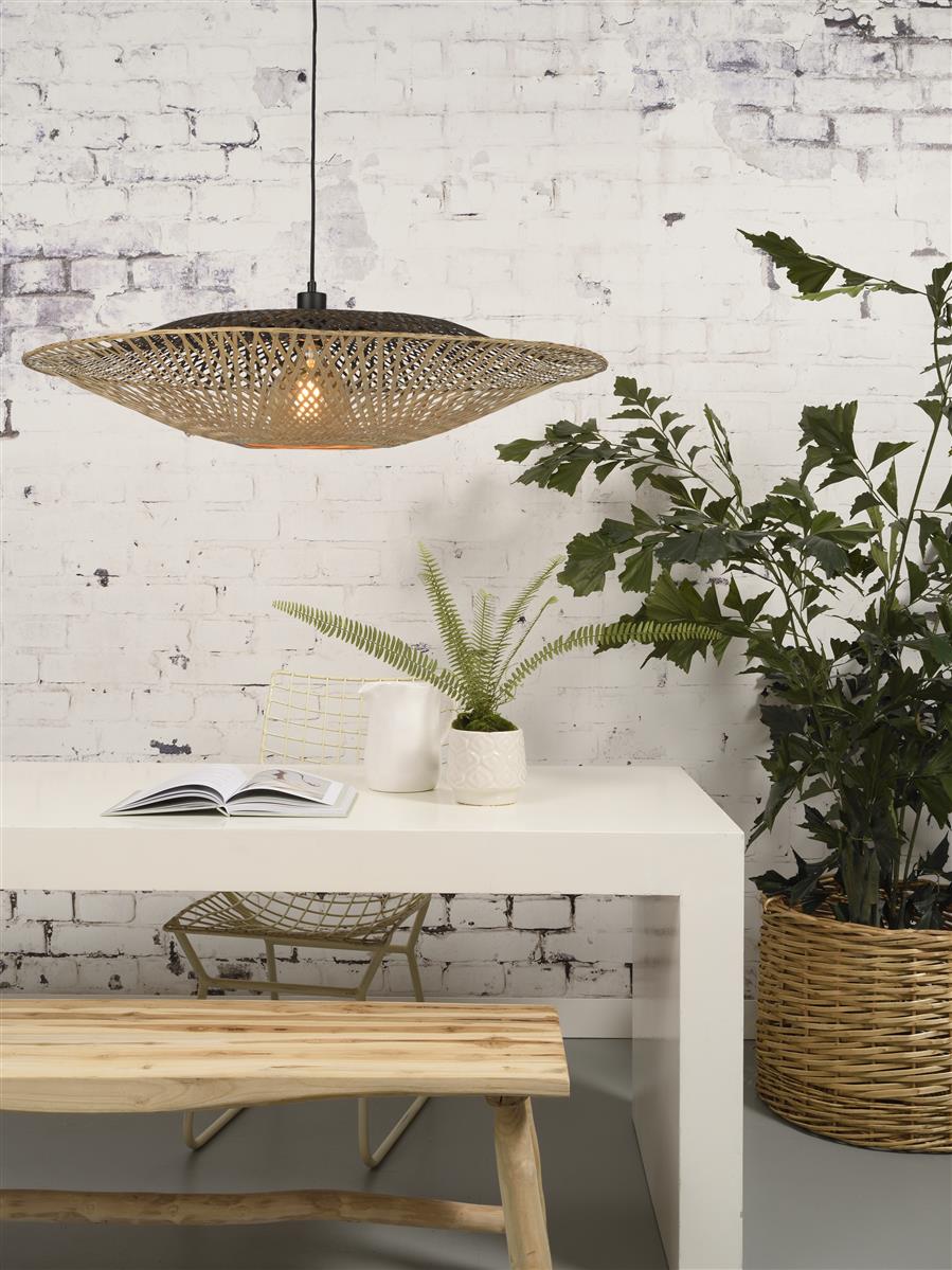 Good&Mojo I Hängeleuchte I KALIMANTAN I Farbe: Natur/Schwarz I Schirm: Ø87 x 20