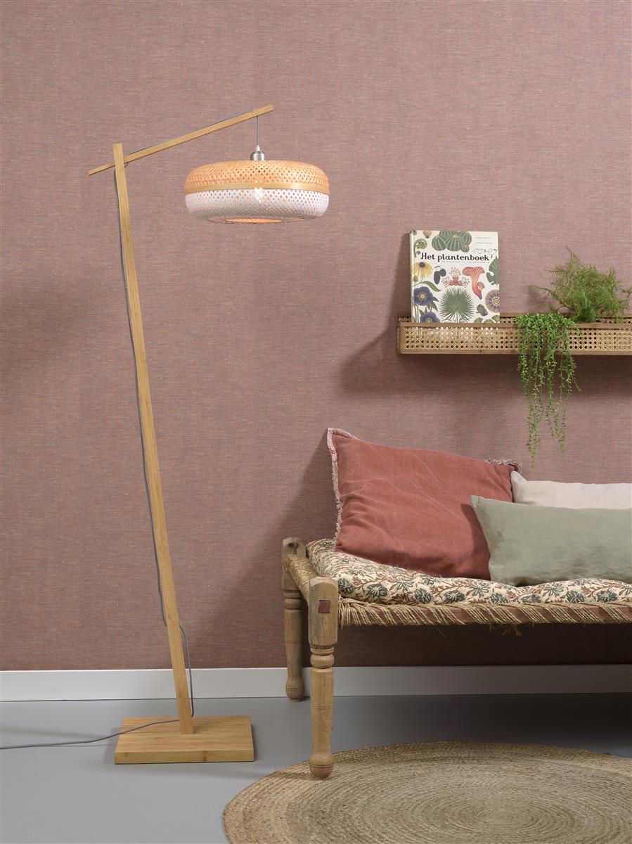 Good&Mojo I Stehleuchte I PALAWAN I Farbe: Natur/Schwarz/Weiß I Schirm: Ø40 x 15
