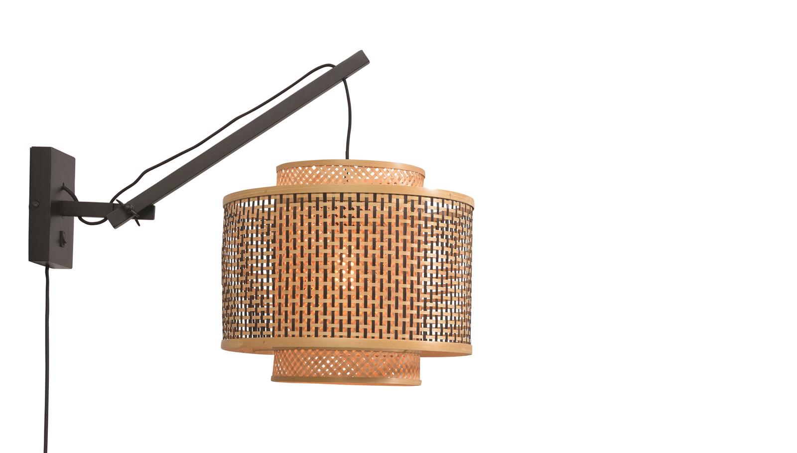 Good&Mojo I Wandleuchte I BHUTAN I Farbe: Natur/Schwarz I Schirm: Ø40 x 34