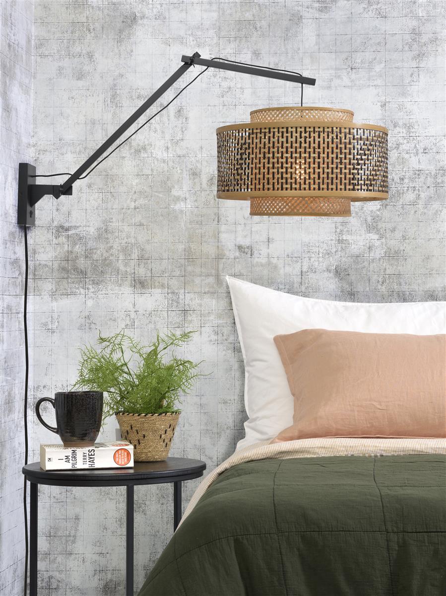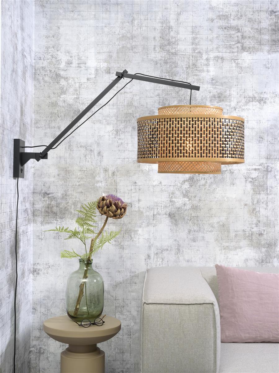 Good&Mojo I Wandleuchte I BHUTAN I Farbe: Natur/Schwarz I Schirm: Ø50 x 30