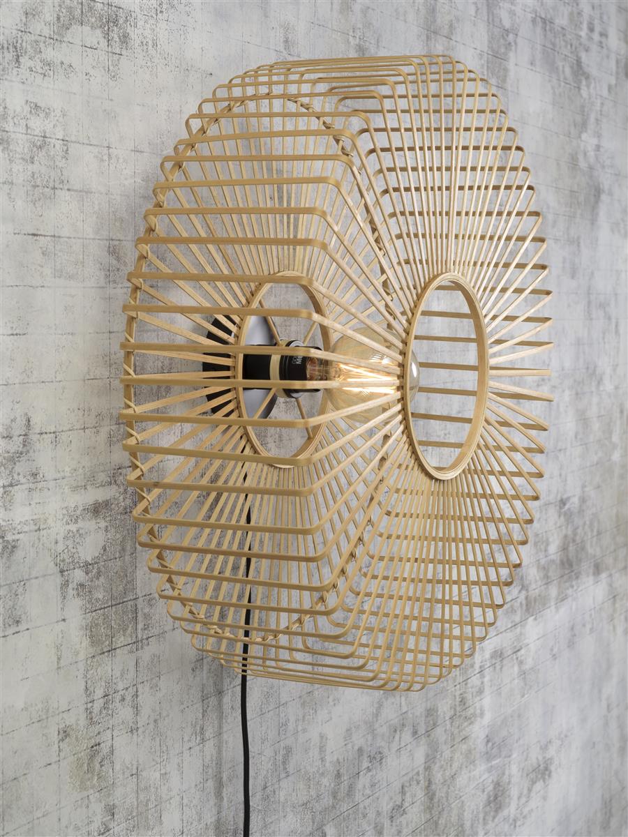 Good&Mojo I Wandleuchte I BROMO I Farbe: Natur/Schwarz I Schirm: Ø60 x 18