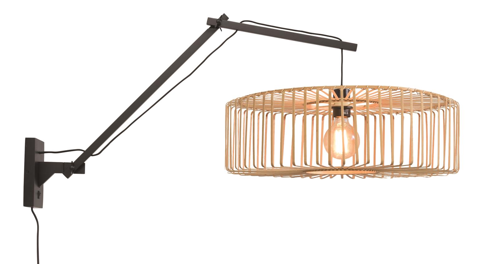 Good&Mojo I Wandleuchte I BROMO I Farbe: Natur/Schwarz I Schirm: Ø60 x 18