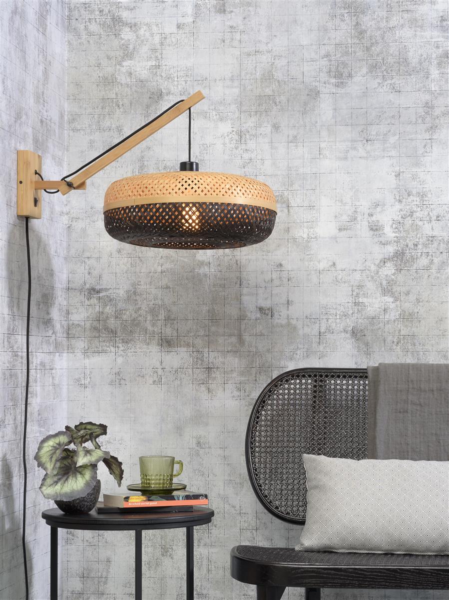 Good&Mojo I Wandleuchte I PALAWAN I Farbe: Natur/Schwarz I Schirm: Ø40 x 15