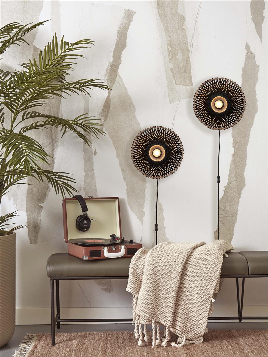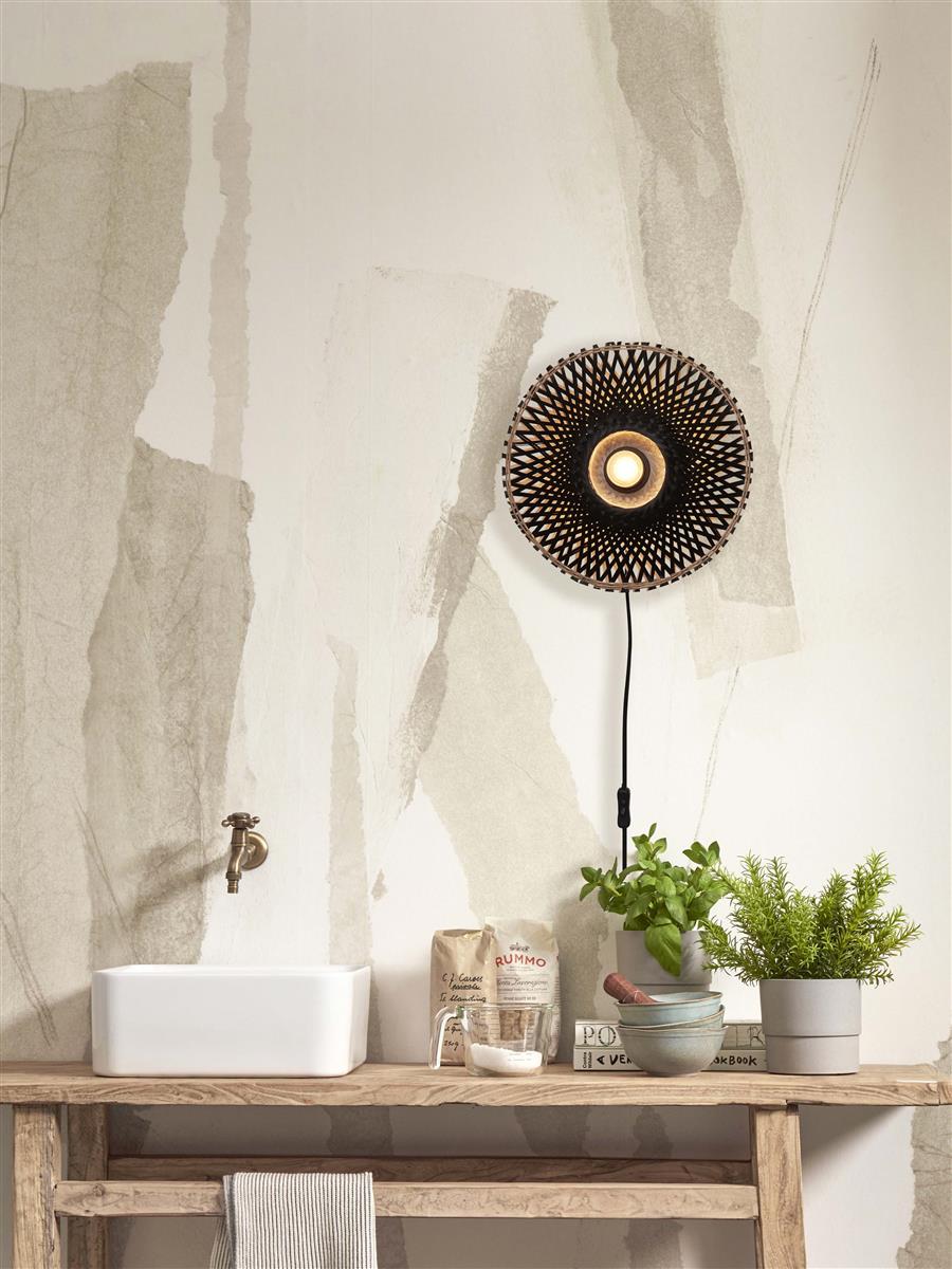 GOOD&MOJO I Wandleuchte I KALIMANTAN I Farbe: Schwarz I Schirm: Ø30 x 8