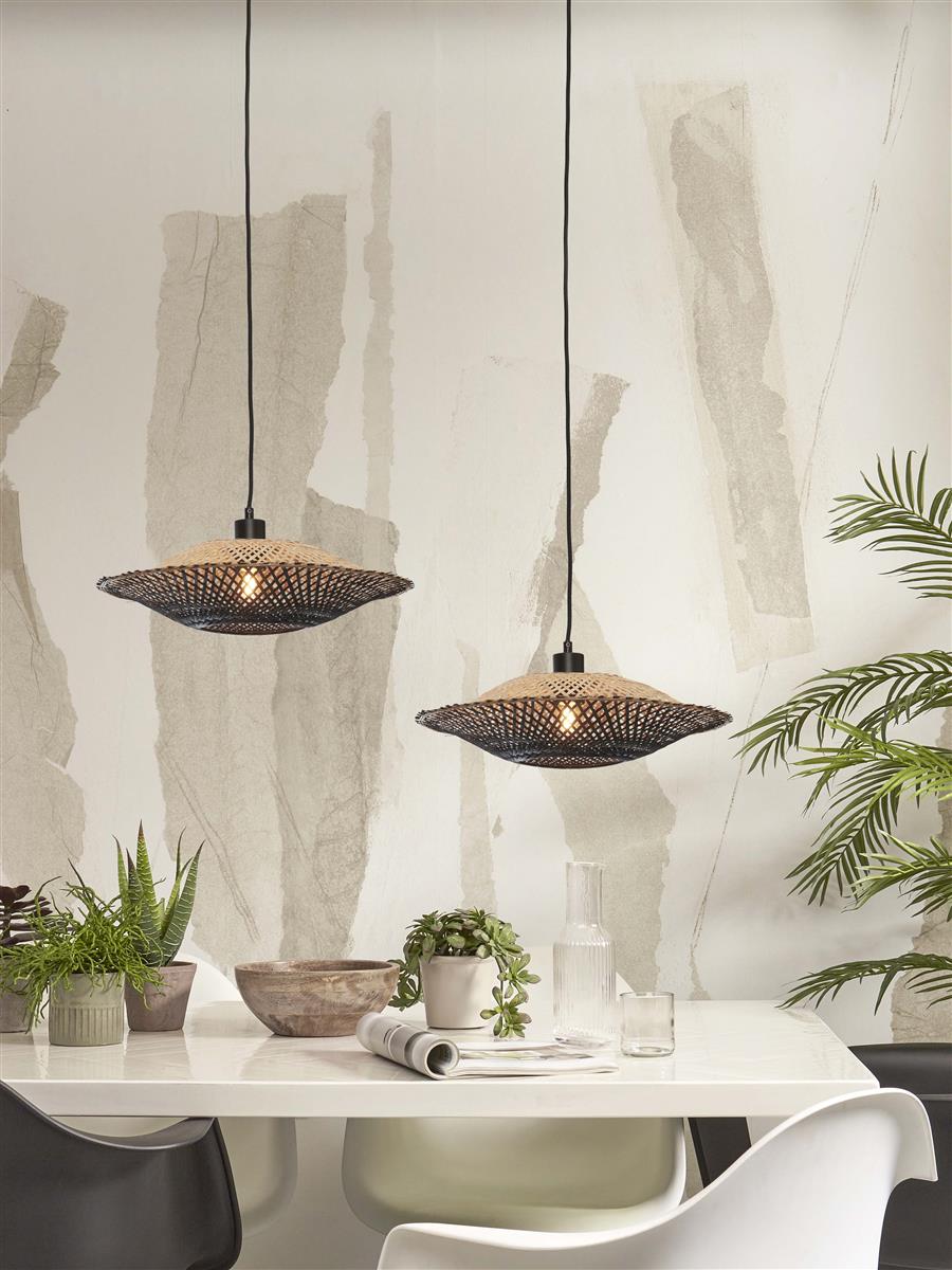 GOOD&MOJO I Hängeleuchte I KALIMANTAN I Farbe: Schwarz/Natur I Schirm: Ø44 x 12