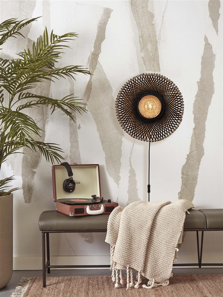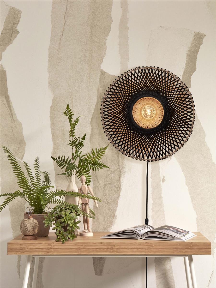 GOOD&MOJO I Wandleuchte I KALIMANTAN I Farbe: Schwarz/Natur I Schirm: Ø44 x 12