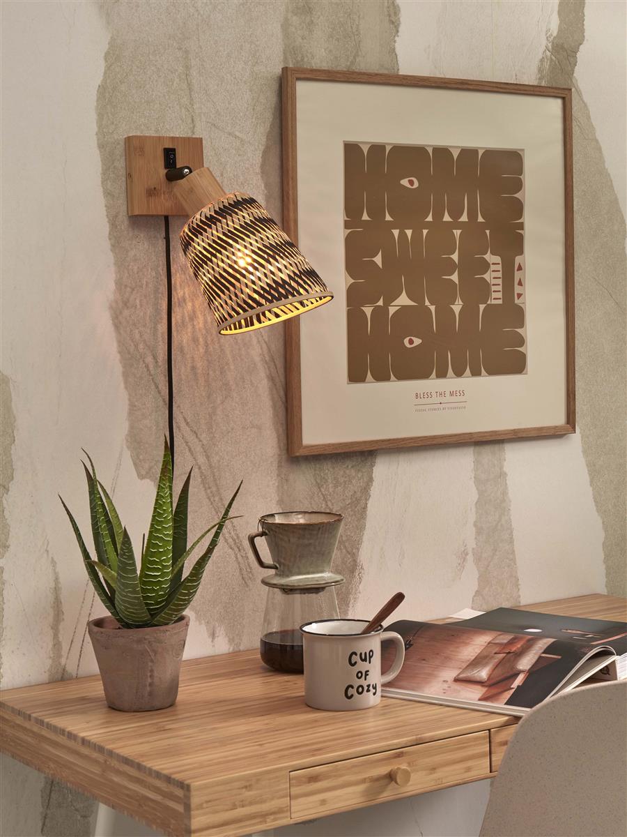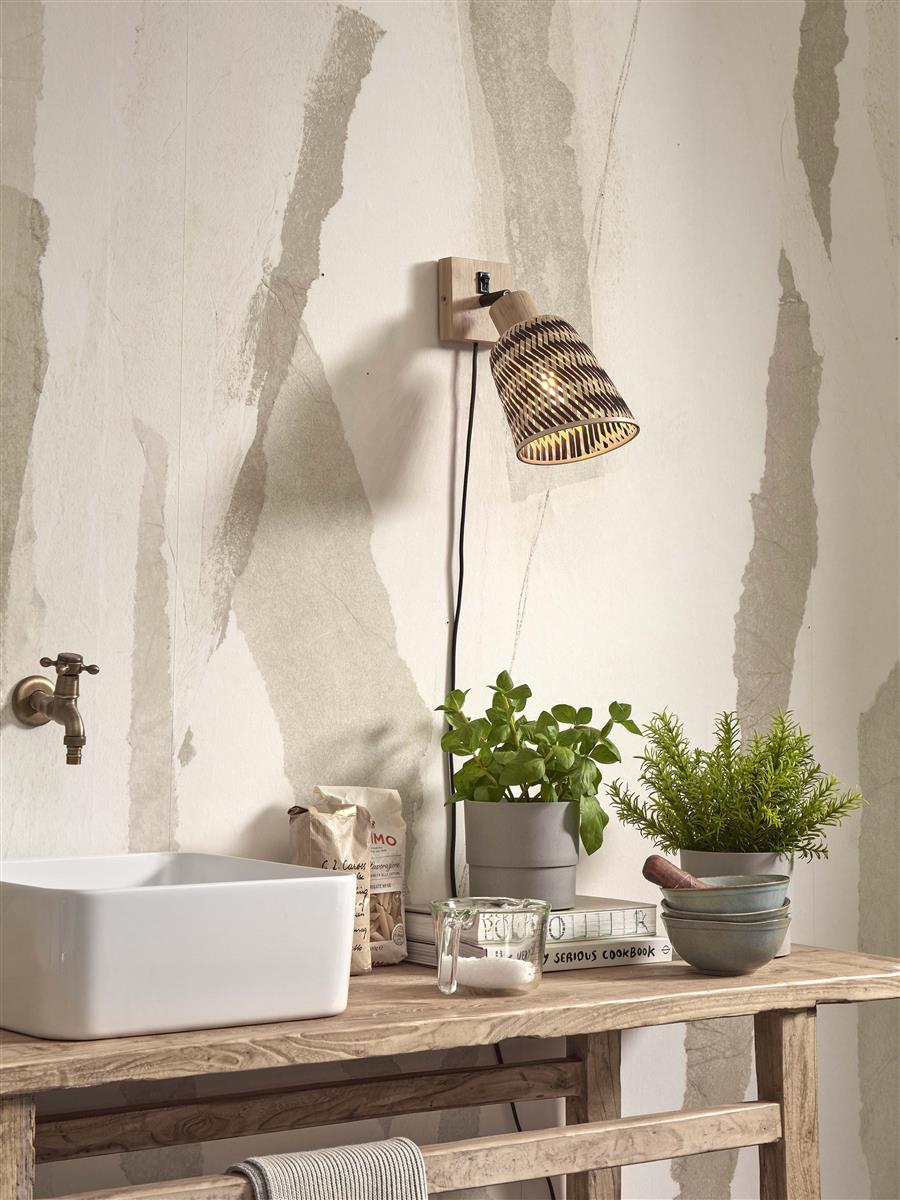 GOOD&MOJO I Wandleuchte I JAVA I Farbe: Natur/Schwarz I Schirm: Ø15 x 17