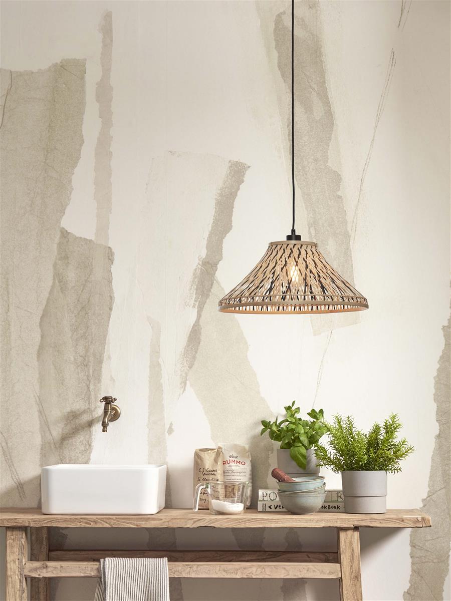 GOOD&MOJO I Hängeleuchte I TAHITI I Farbe: Natur/Schwarz I Schirm: Ø45 x 20