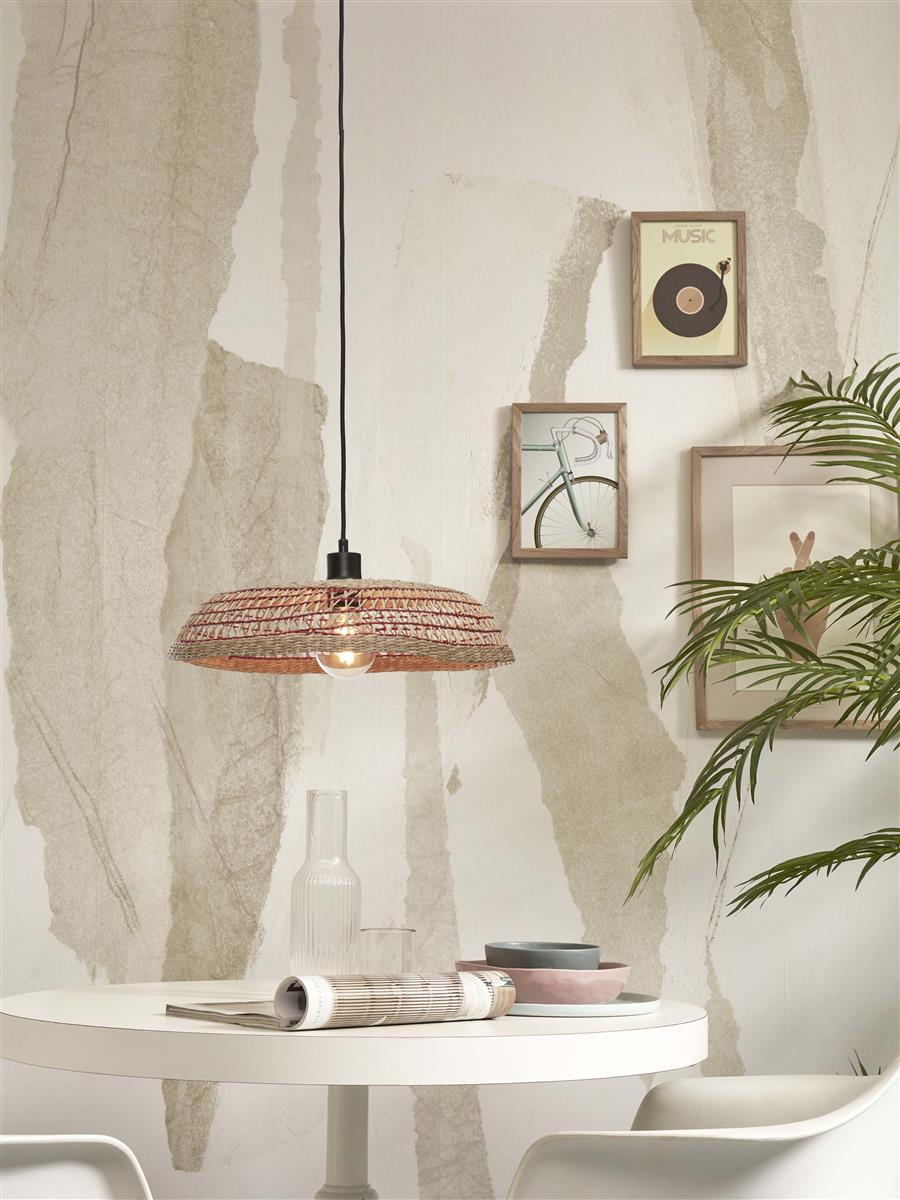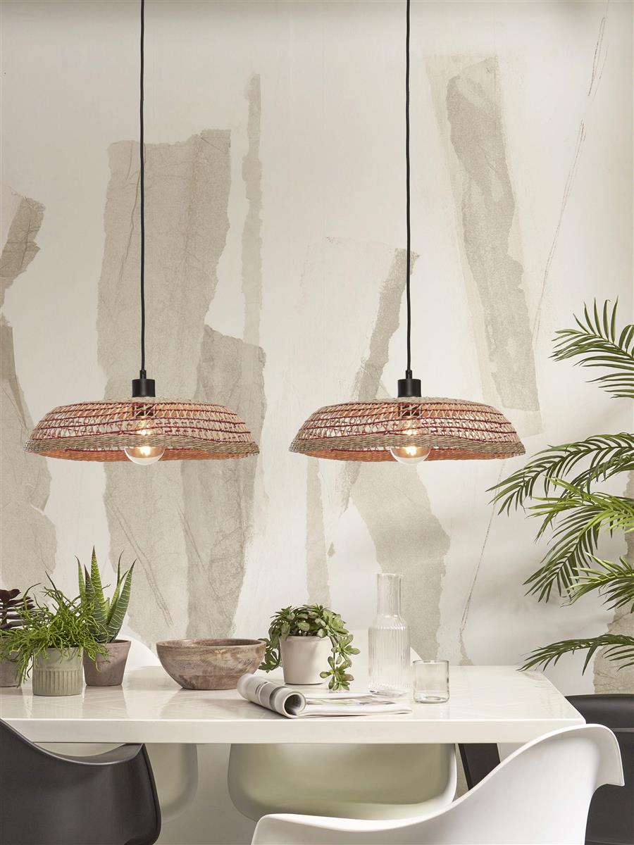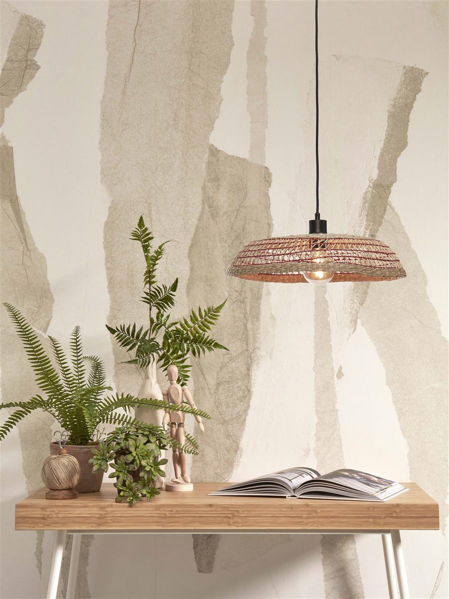 GOOD&MOJO I Hängeleuchte I PANTANAL I Farbe: Natur/Rot I Schirm: Ø45 x 9
