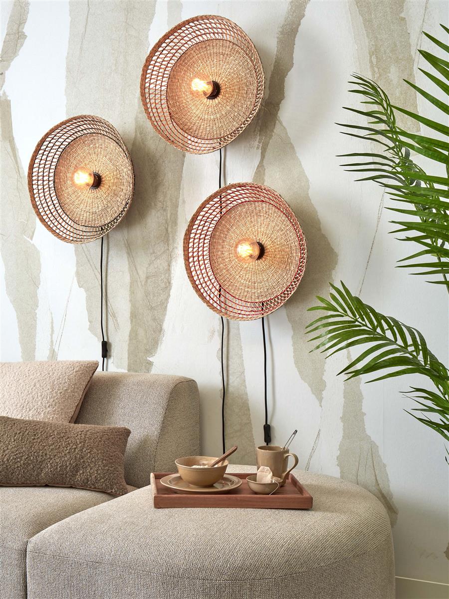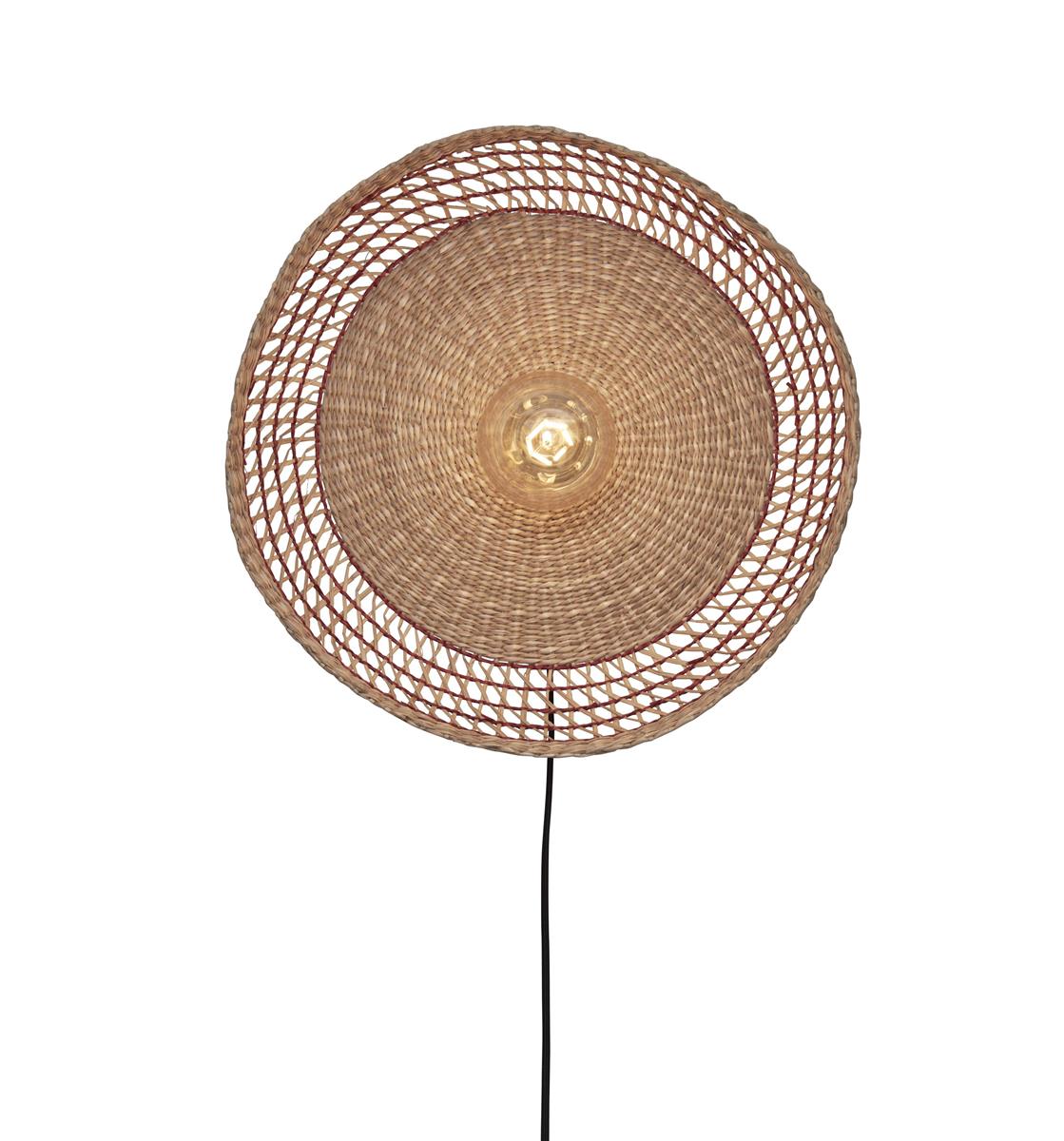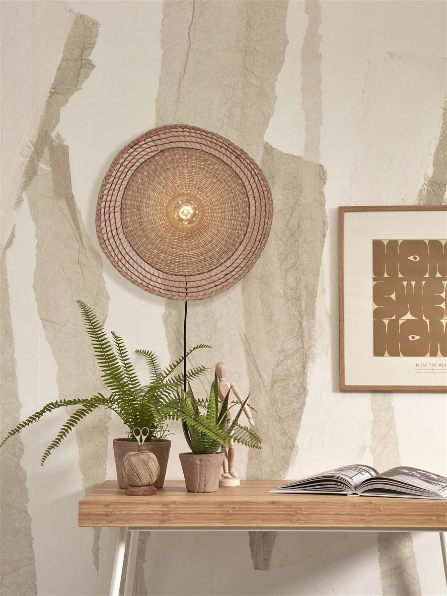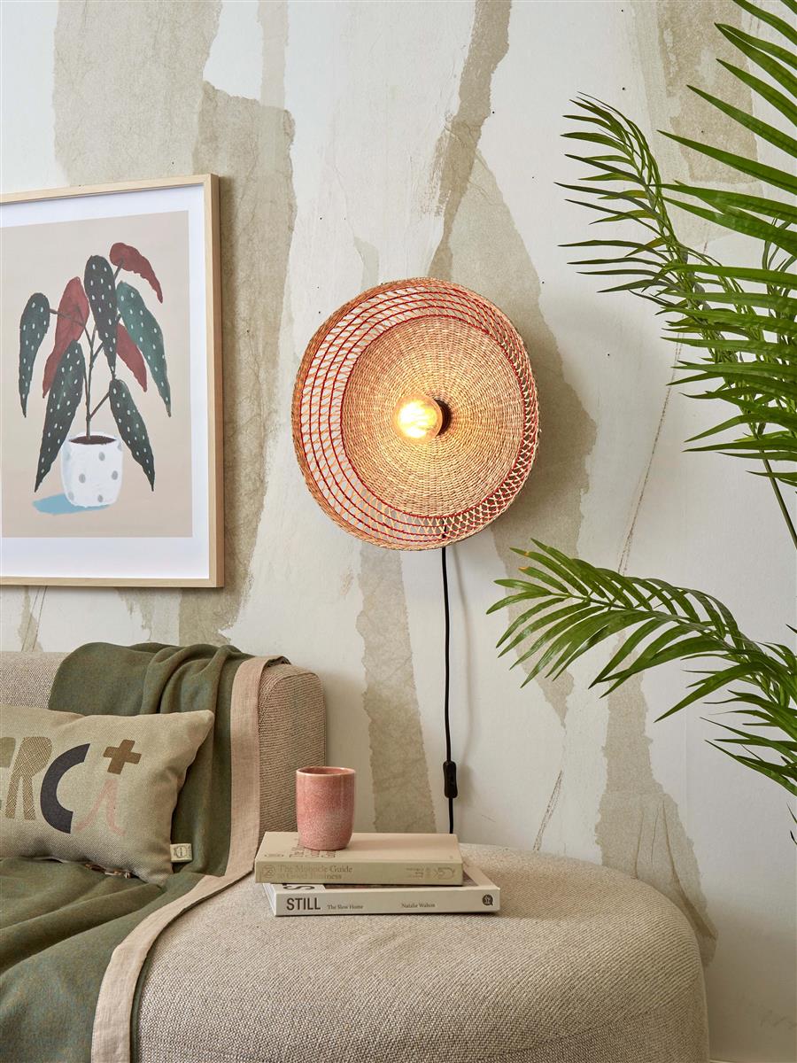 GOOD&MOJO I Wandleuchte I PANTANAL I Farbe: Natur/Rot I Schirm: Ø45 x 9
