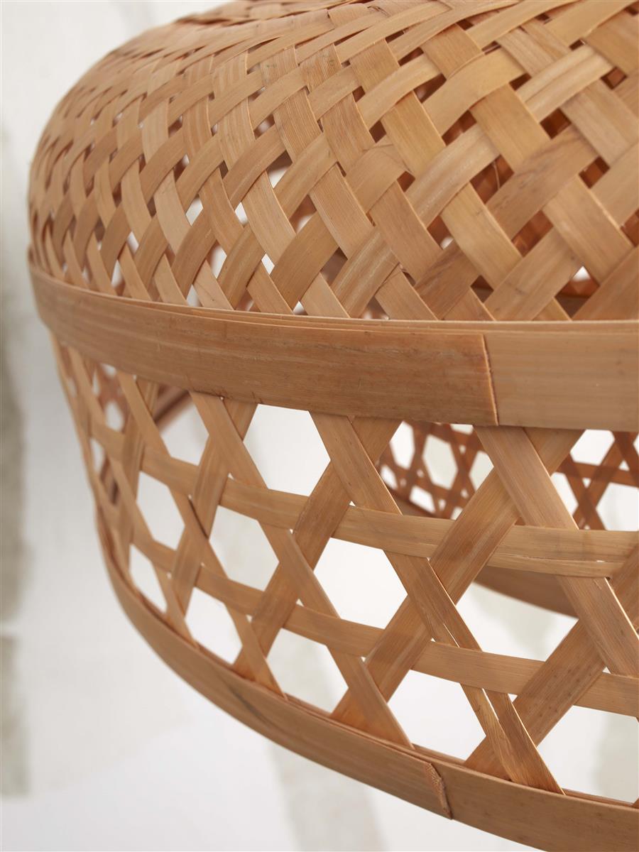 ☆ Länge in cm: 62 ☆ Breite in cm: 62 ☆ Höhe in cm: 20 ☆ Maße des Schirms in cm: Ø60 x 18 ☆ Material des Schirms: Bambus ☆ Form des Schirms: Rund ☆ Watt: 60 ☆ Fassung: E27 ☆ Für Dimmer geeignet: Ja ☆ Höhenverstellbar: Ja ☆ Material: Bambus/Eisen ☆ Kabellänge in cm: 200