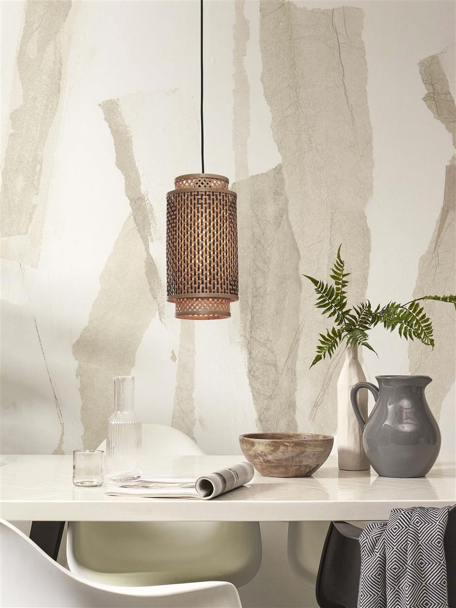 GOOD&MOJO I Hängeleuchte I BHUTAN I Farbe: Natur/Schwarz I Schirm: Ø18 x 35
