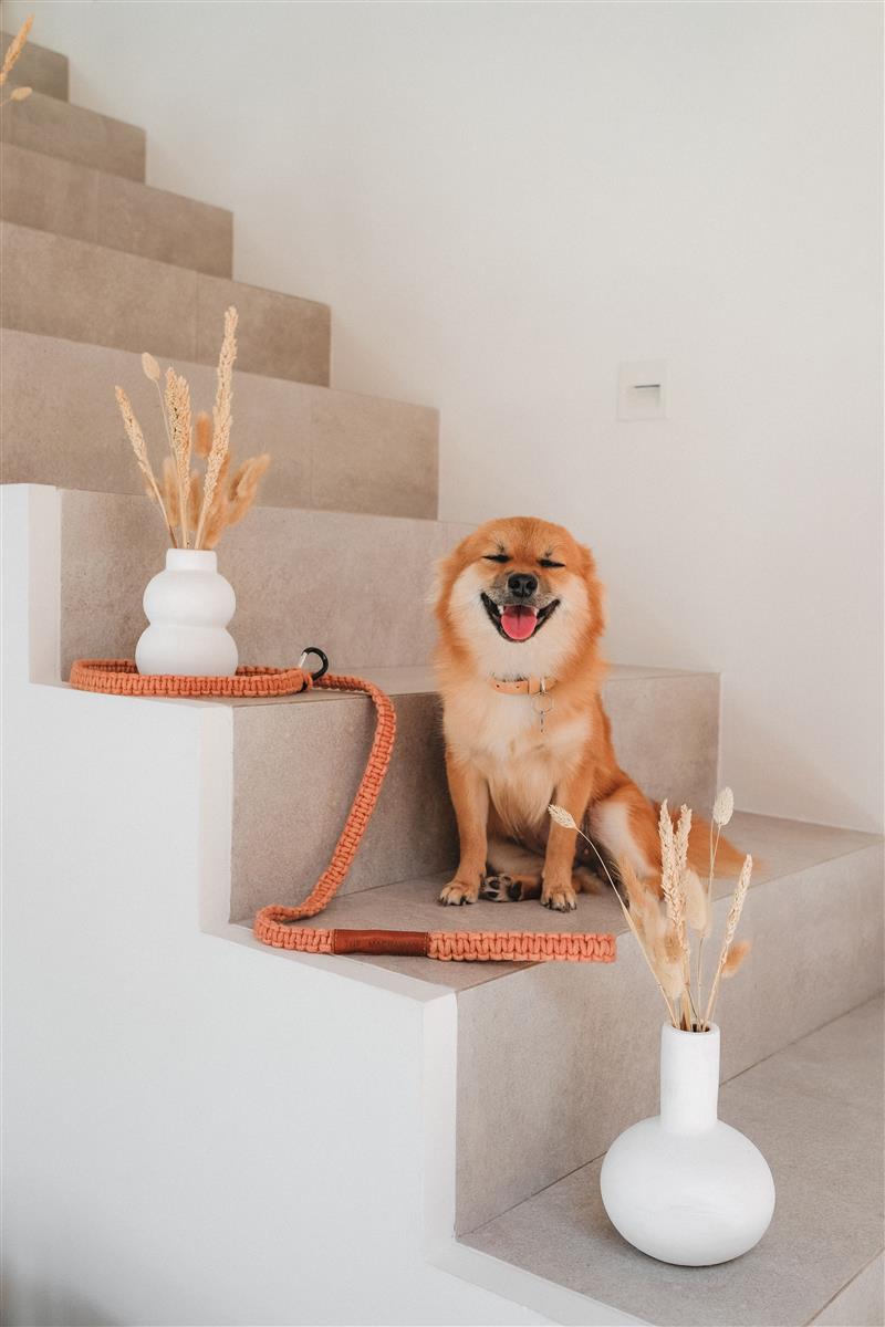 Die Dui Pet Leash besteht aus natürlicher Baumwollschnur, veganem Leder und wurde mit Pflanzenfarben von Hand gefärbt, um ein umweltfreundliches Gefühl zu vermitteln. Die Dui Haustierleine verfügt über robuste Edelstahlverschlüsse mit einer Belastbarkeit von 120 kg und ist 1,4 m lang.