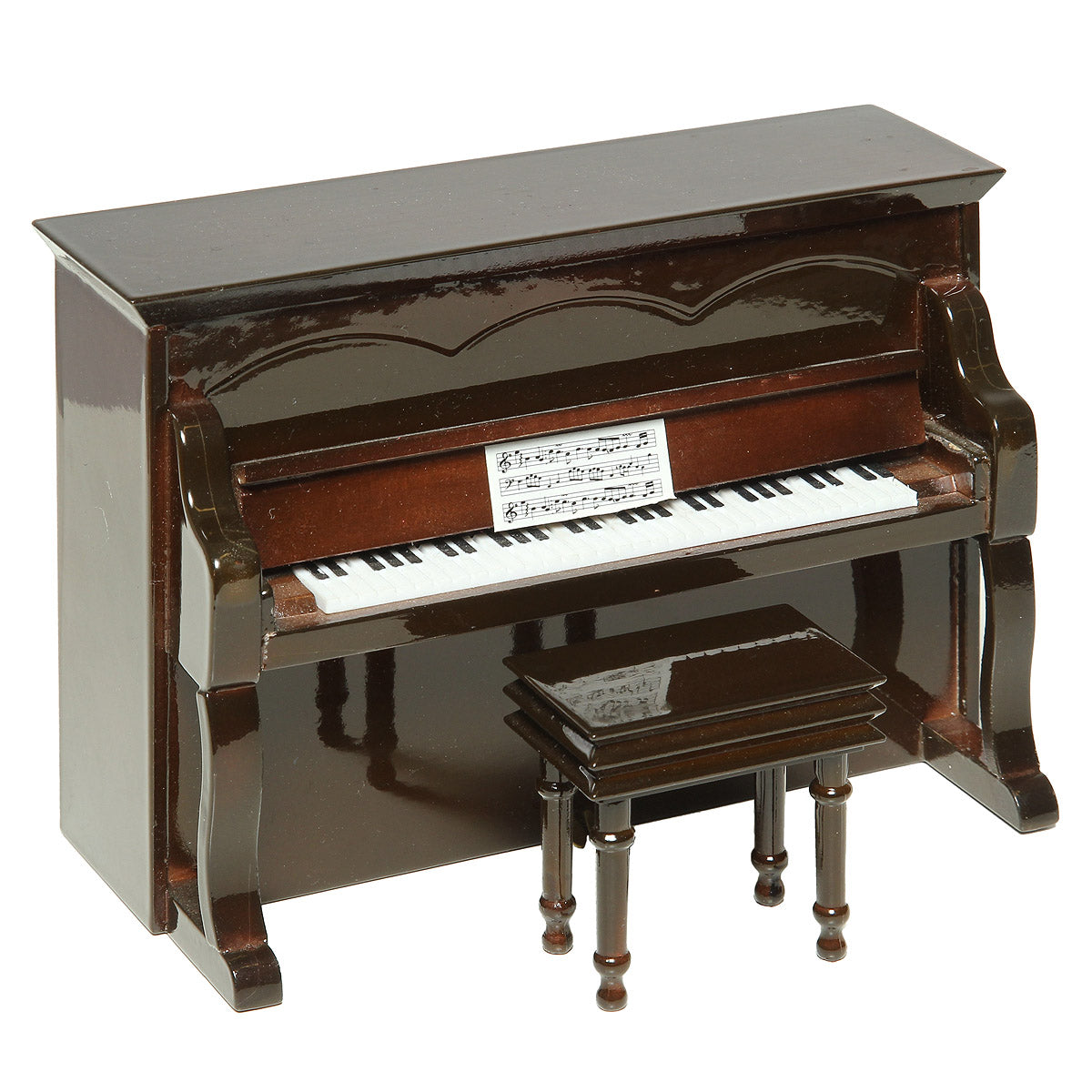 Das dunkelbraune Klavier wird aus glänzendem Holz gefertigt und mit Hocker geliefert. Die Tastaturabdeckung kann geöffnet werden. Die Pedale wurden aus mit 24 Karat vergoldetem Metall gefertigt. Entspannen Sie sich, während Sie der beruhigenden Melodie „The Love Song“ lauschen.