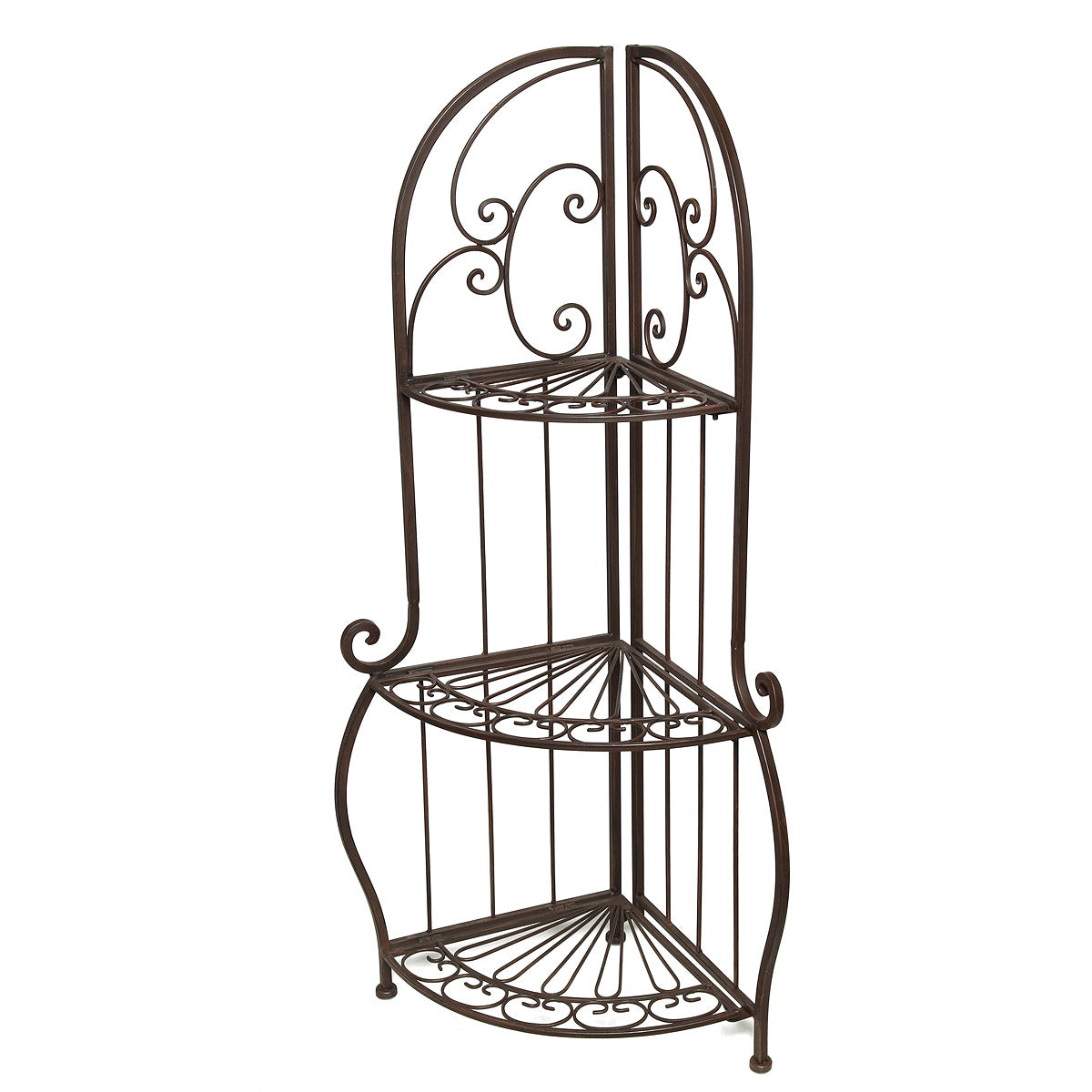 Das schöne Eckregal ist sorgfältig aus Schmiedeeisen gefertigt. Durch einen speziellen Lackierprozesses in Braun- und Schwarztönen wird der nostalgische Look erzielt.