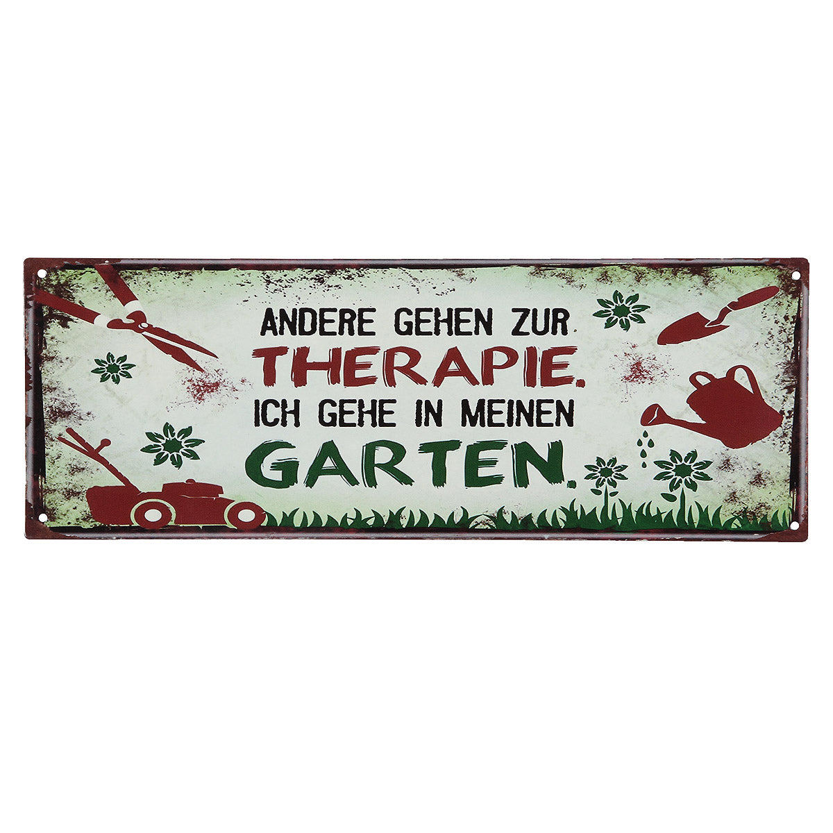Dieses rustikale Metallschild spiegelt den antiquarischen Charakter wieder.