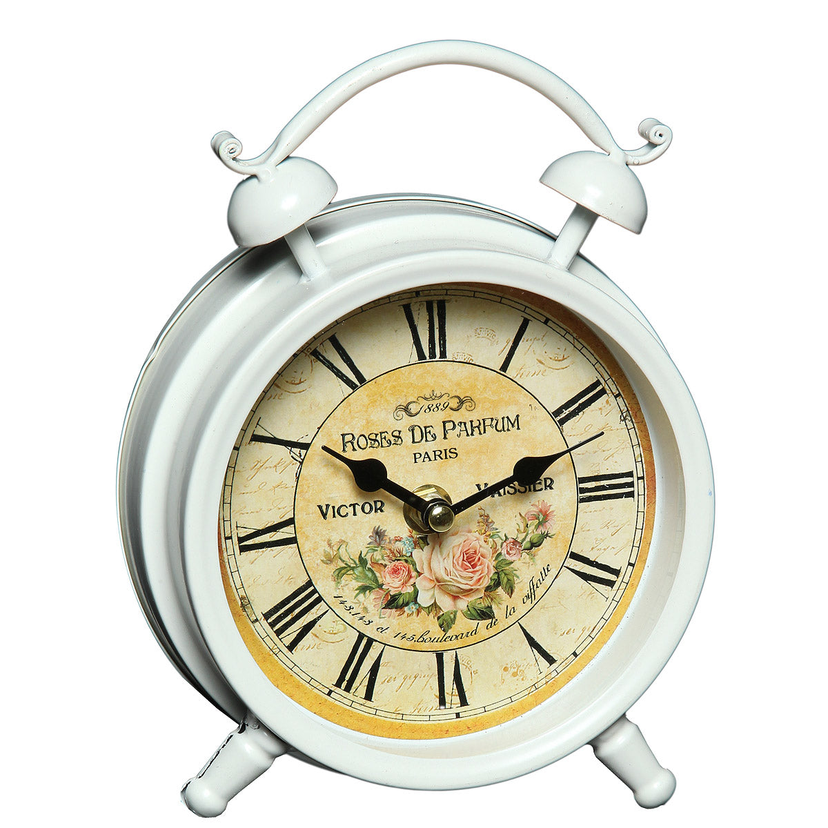 Formschöne Tischuhr im klassisch hellem Rosen Stil ohne Weckfunktion