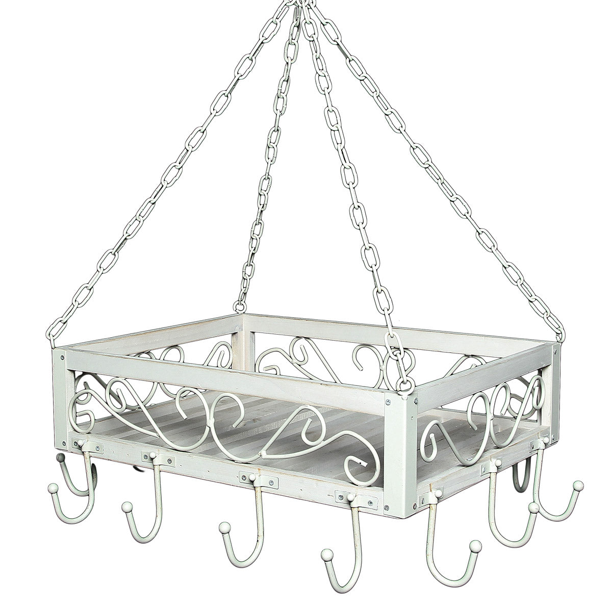 Unser stilvoller weißer Topfhänger ist ein echter Hingucker und bringt ein ganz besonderes Ambiente auf Ihre Terrasse, in Ihr Wohnzimmer oder in Ihre Landhausküche.