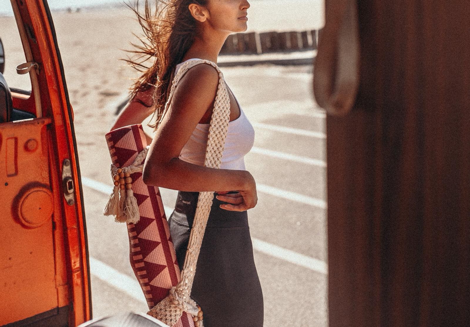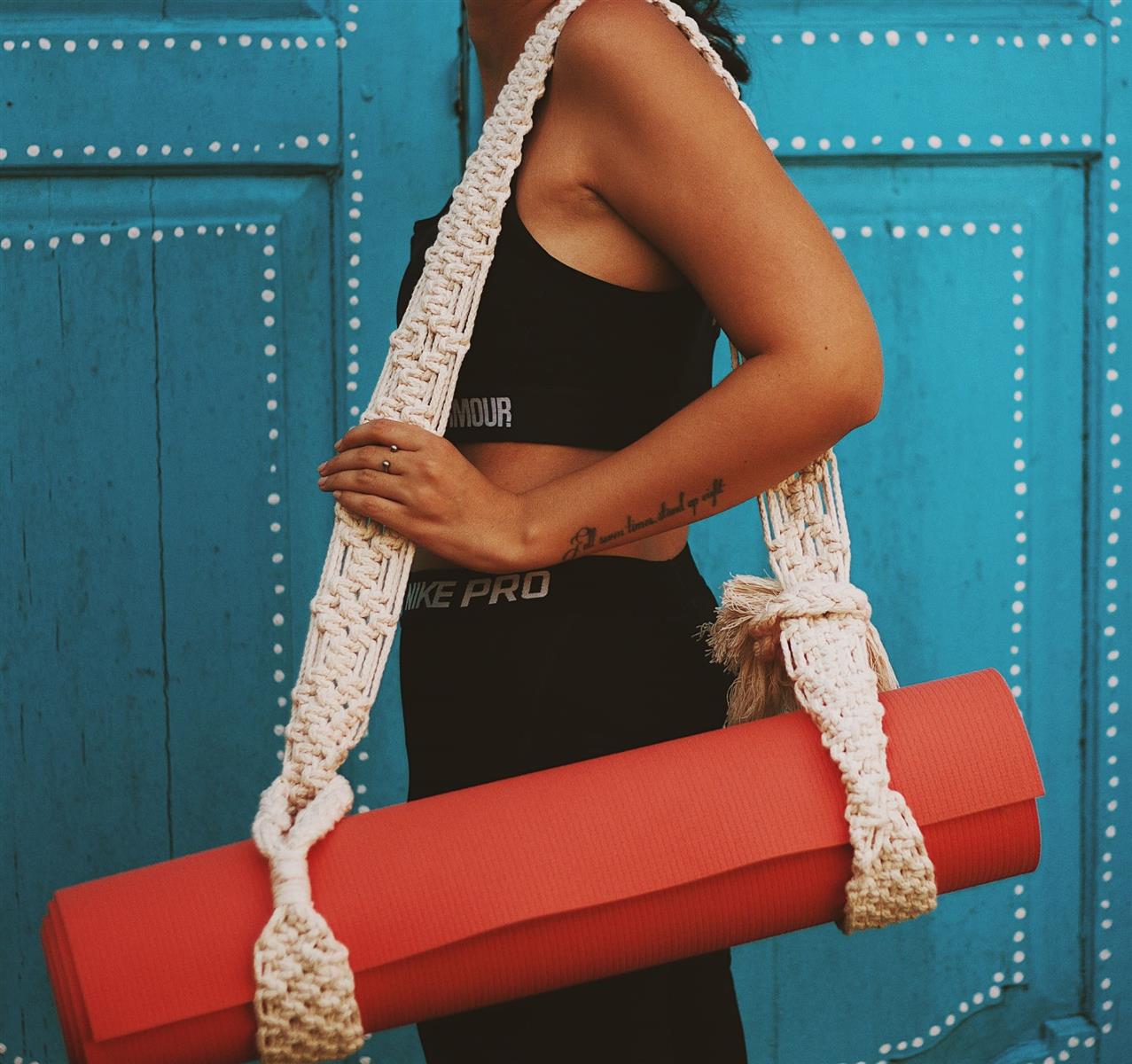 Der Mandiri Yoga Mat Sling Carrier ist eine handgefertigte und praktische Art, Ihre Yogamatte zur Praxis zu tragen. 100% handgewebte Bio-Baumwolle Die Macraman's Yogamatten-Tragetasche ist 90cm lang und kann für Yogamatten aller Größen angepasst werden.